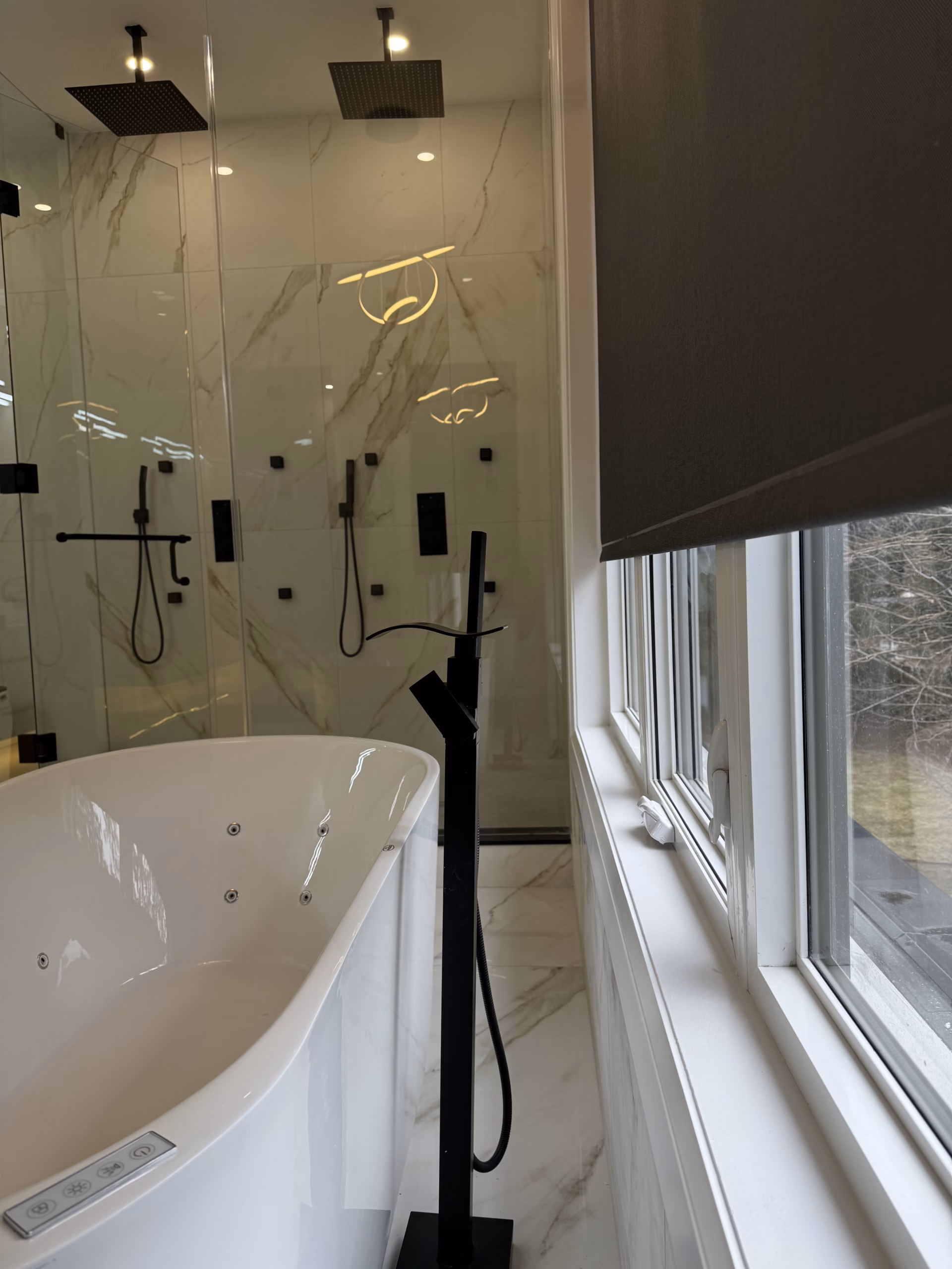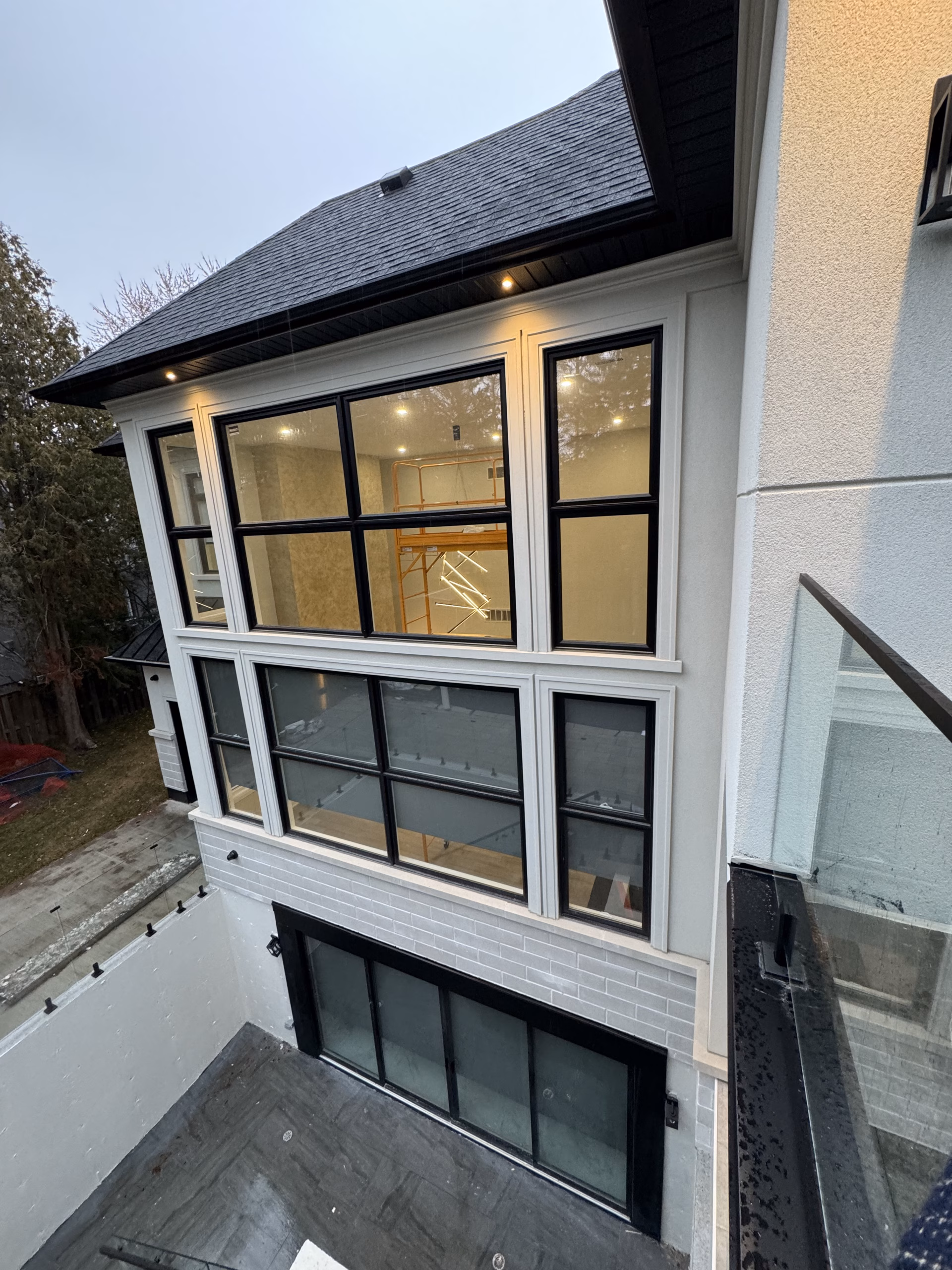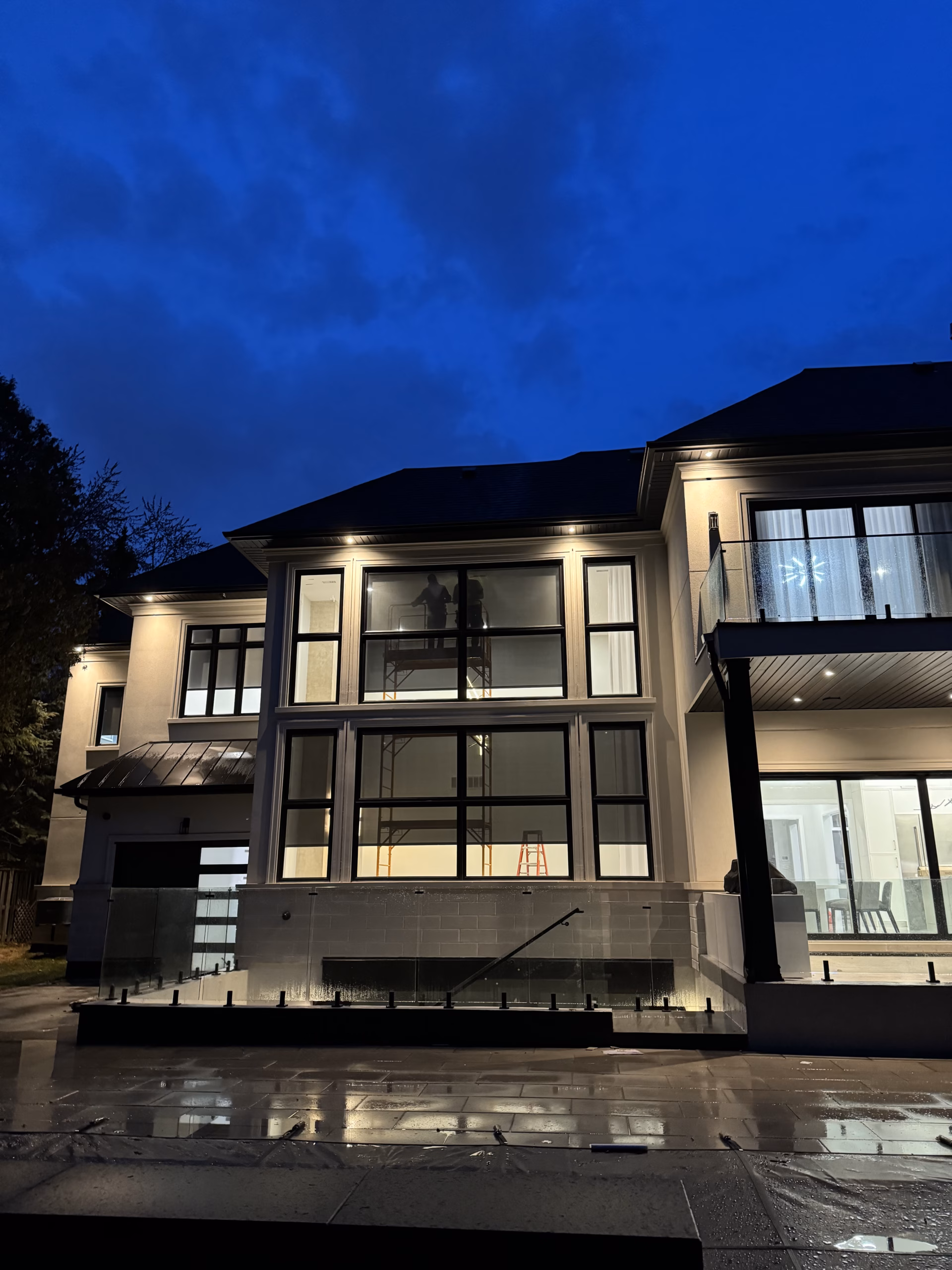 This full-scale gut renovation reimagined the entire home with a balance of luxury and practicality. We installed new black-framed windows throughout, integrated advanced blind and security systems, and incorporated custom glasswork to enhance light and visual continuity. Comprehensive electrical upgrades supported a layered lighting plan — from statement chandeliers to recessed and task lighting — while thoughtful paint finishes and detailed millwork tied the home together with a cohesive, high-end feel. The kitchen was fully remodeled around the family’s needs, and the bathrooms were completely redesigned, including plumbing modifications to accommodate both showers and freestanding tub options. Custom stone slabs were used throughout for a modern, luxurious aesthetic, and we added purpose-built spaces like a fully designed pantry and bespoke cabinetry to ensure every area performs as beautifully as it looks. While the clients were away during construction, we maintained full transparency through regular schedule and photo updates via our project management platforms.
